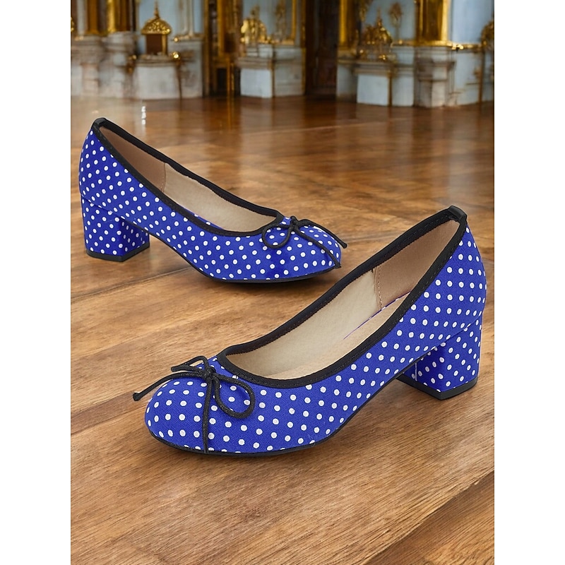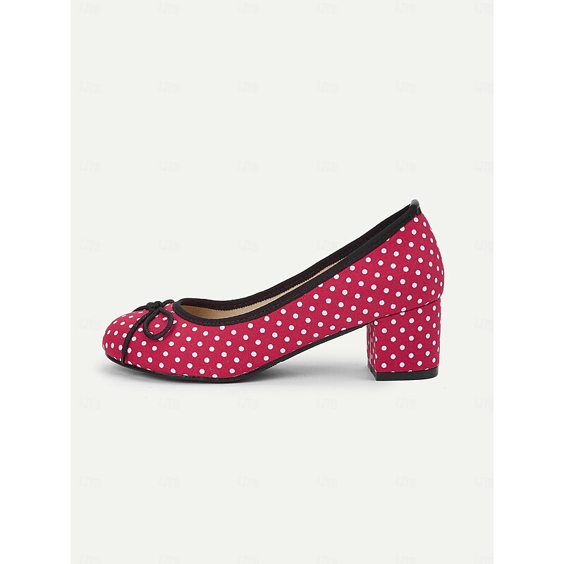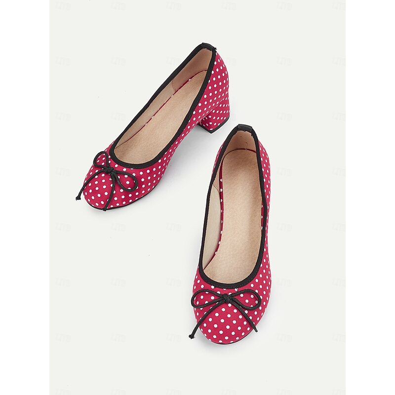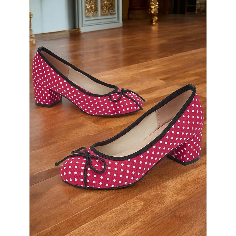 HOT ! Women's Red Polka Dot Block Heels – Vintage Bow Pumps for Retro Parties, Dance & 1950s Style Outfits