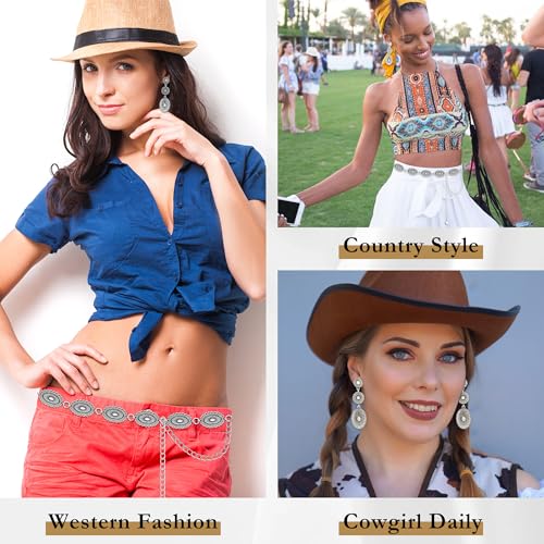Cowgirl Belt for Women Western Jewelry Set with Western Earrings, Concho Belt Matching Country Concert Outfit, Vintage Cowboy Earrings as Halloween Gifts Cowgirl Jewelry Boho Outfit 6