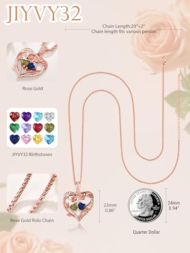 Rose Heart Necklace Gifts for Women - Rose Gold Double Birthstone Necklace, Wedding Anniversary Birthday Gifts for Her Wife Mom Friend Daughter Grandma Sister