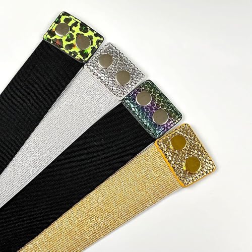 Womens Elastic Waist Belt Wide Stretch Leopard Print Fish Scale Glitter for Dress 4