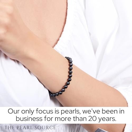 THE PEARL SOURCE 14K Gold 7-7.5mm Round Black Japanese Akoya Saltwater Cultured Pearl Bracelet for Women 6