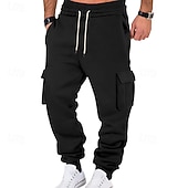 More information about Men's Cargo Pants Fleece Pants Sweatpants Joggers Trousers Elastic Waist Drawstring Multi Pocket Plain Comfort Warm Full Length Outdoor Casual Daily Sports Fashion Black White