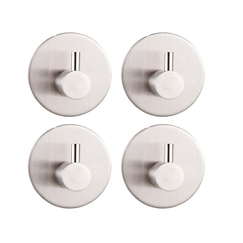 4pcs Wall Hooks Self-adhesive Durable 304 Stainless Steel Wall Hangers Waterproof Rustproof for Kitchen Bathrooms 3M 1