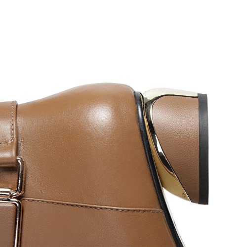 TinaCus Women's Pointed Toe Genuine Leather Handmade Buckle Low Chunky Heels Side Zip Up Stylish Ankle Boots 4