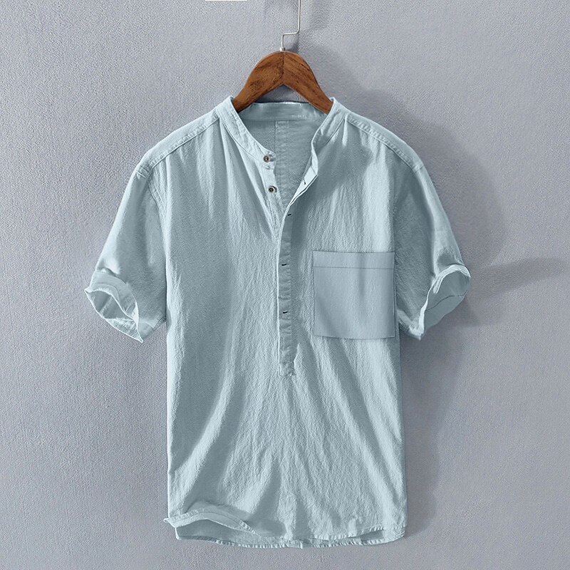 Highlights - Perfect for the summer season - Short sleeves for added comfort during warm weather - Specifically designed for men - Made with high-quality linen fabric - Ideal for vacation or holiday trips - Features a stylish stand collar neckline