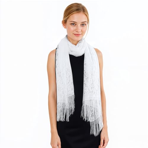 • Versatile Styling: Measuring 76.4” x 24.8”, this white shawl for women dressy offers ample coverage and multiple styling options—drape it over your shoulders, wrap it around your neck, or tie it in your hair for a chic, fashionable look suitable for any occasion.