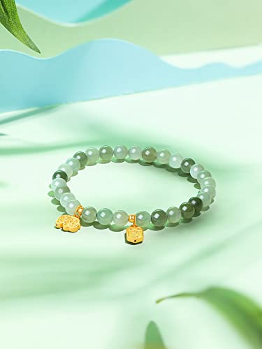 • Sophisticated Jade Bracelet: Stretch bracelet handcrafted with 5.7-6.2 mm round Green Jade Beads, 24K Real Gold Jewelry Accessory, comfortable and aesthetical enough for daily wear. Pair with other jewelry to decorate yourself. Bring more luck and fortune for your daily life.