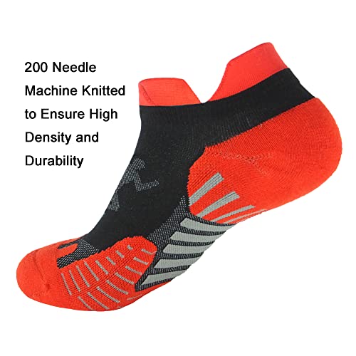 Mens and Womens 5 Pairs Red Padded Anti Odor Blister Proof Seamless Low Cut Cotton Running Socks 6