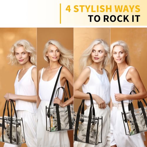 • Multi-Purpose - The clear tote bag comes with adjustable shoulder strap, which is easy to disassemble and has 4 carrying methods to meet a variety of occasions. perfect for concerts and games where clear bags are required.