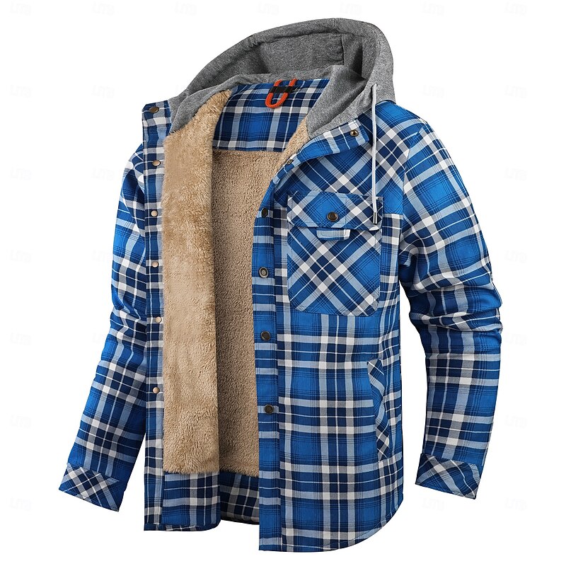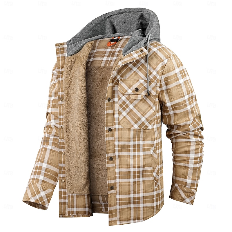 More information about Men's Shirt Jacket Fleece Jacket Shacket Formal Home Warm Hooded Winter Spring & Fall Grid / Plaid Vintage Western Style Shirt Collar Regular Red Navy Blue Green Khaki Dark Grey Jacket