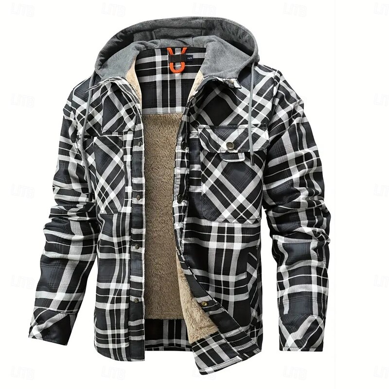 : Crafted from a blend of durable cotton, this men's fleece jacket combines comfort and warmth. The exterior showcases a classic grid/plaid pattern, adding an element of timeless sophistication to your wardrobe.