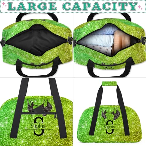 Custom Name Sports Duffel Bag, Lime Green Glittering Shiny Stars Bling Personalized Gym Sport Duffel Cheerleading Bag Travel Weekender Tote Bag 5