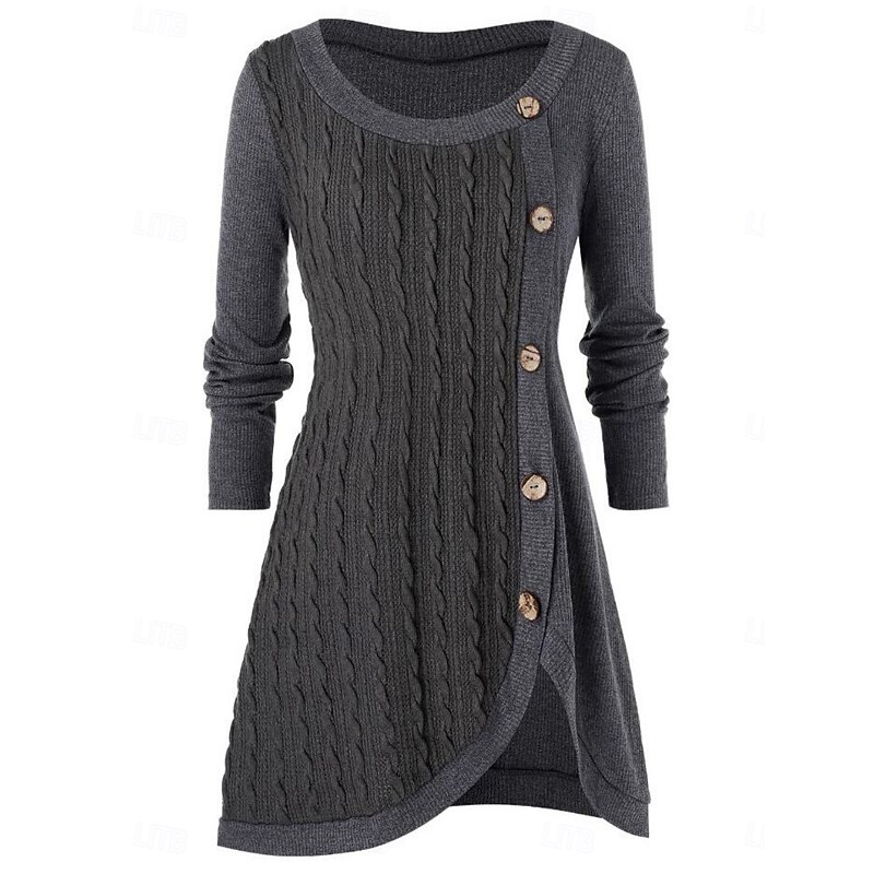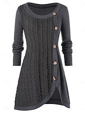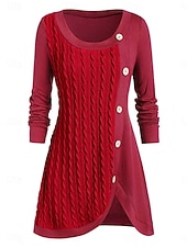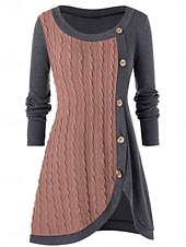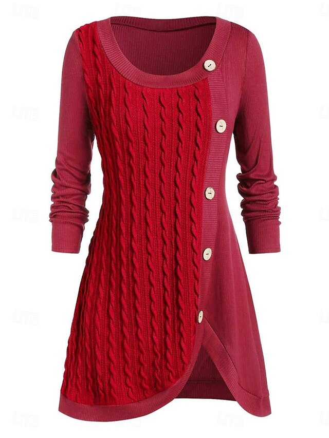 More information about Women's Sweater Casual Soft Pure Color Ribbed Crew Neck Buttons Knitted Long Sleeve Long Tops Knit Outdoor Daily Weekend Pink Red Fall Winter