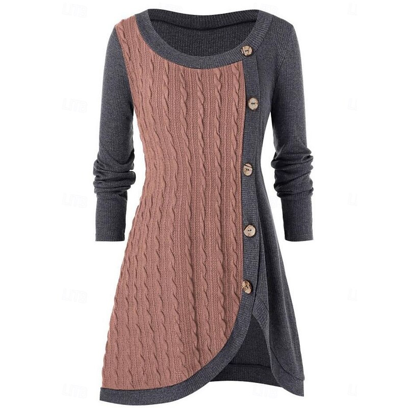HOT ! Women's Sweater Casual Soft Pure Color Ribbed Crew Neck Buttons Knitted Long Sleeve Long Tops Knit Outdoor Daily Weekend Pink Red Fall Winter