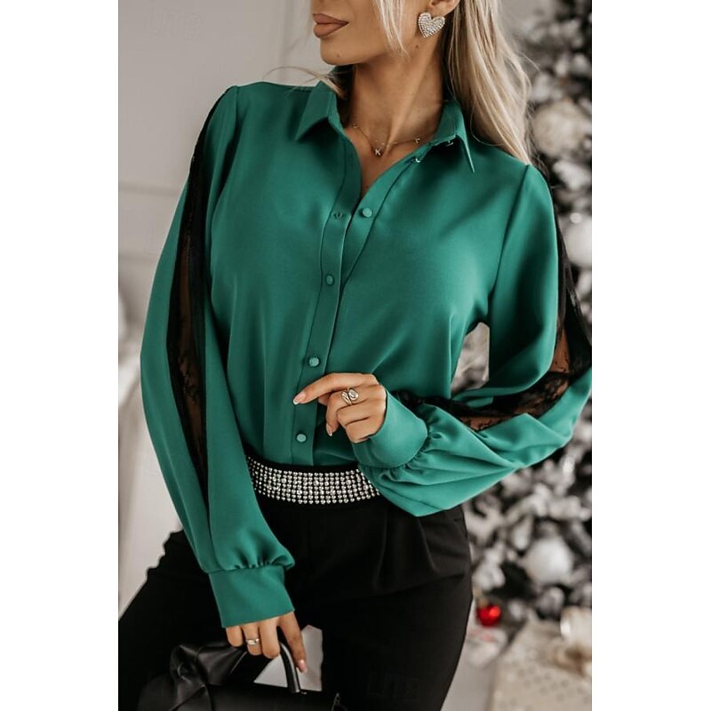 More information about Shirt Lace Shirt Blouse Mesh Patchwork Top Women's Black White Green Solid Color Lace Button Street Daily Fashion Shirt Collar S