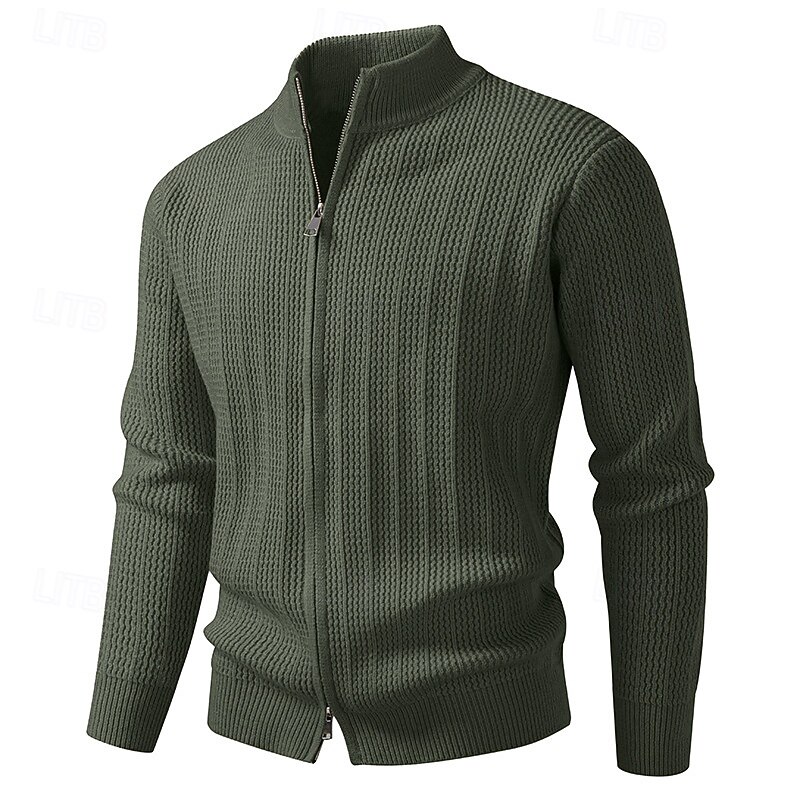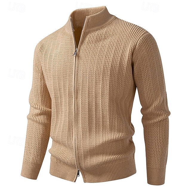 More information about Men's Cardigan Sweater Cropped Sweater Zip Sweater Knit Sweater Ribbed Knit Regular Tops Zip Up Plain Stand Collar Fashion Classic Vacation Daily Wear Clothing Apparel Fall Winter Black Camel XS S M