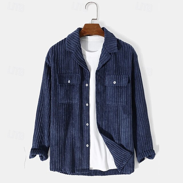 More information about Men's Lightweight Jacket Shirt Jacket Casual Jacket Shacket Vacation Daily Breathable Pocket Spring Fall Plain Fashion Classic Lapel Regular Dark Blue Jacket