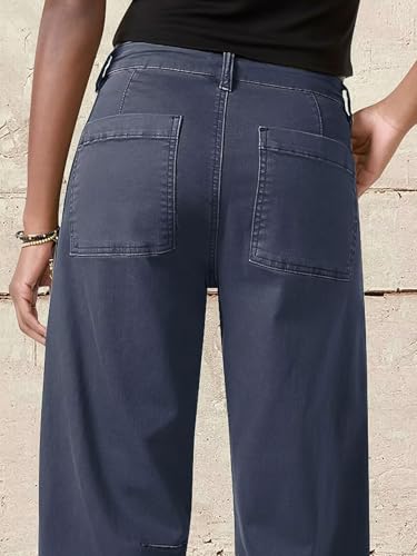 More information about Flamingals Straight Mid Waist Barrel Pants Casual Button Fly Cropped Pants for Women