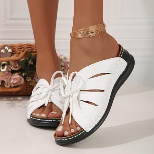 HOT ! Womens Orthopedic Sandals Wide Width Comfortable Insole Vamp Bowknot Crossbands Women's Wedge Sandals Open Toe Fishmouth Hollow Out Wedge Slippers Low Heel Beach Trendy Wedding Going Out Slippers