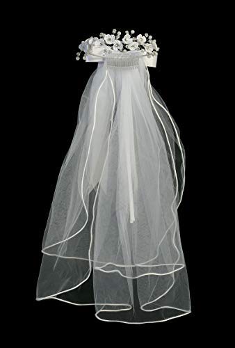 SWEA Pea & Lilli Girls First Communion Veil - White Holy 1st Communion Headpiece with Comb and Flowers 1