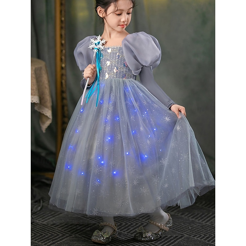 HOT ! Frozen Princess Fairytale Elsa Flower Girl Dress Theme Party Costume (without LED Lights) Tulle Dresses Girls' Movie Cosplay Christmas Carnival New Year Performance Birthday Party