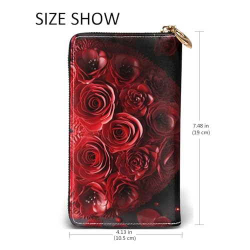 More information about Red Rose Love Heart Women Wallets Leather Zip Around Clutch Purses Waterproof Credit Card Holder With Phone Holder Ladies Travel Coin Purse