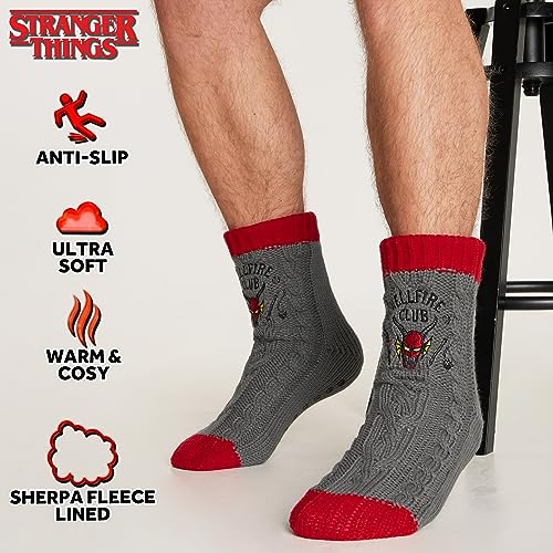 HOT ! Stranger Things Fluffy Socks for Men Teenagers Soft Warm Slipper Socks with Non Slip Grip Pads One Size Gifts for Men