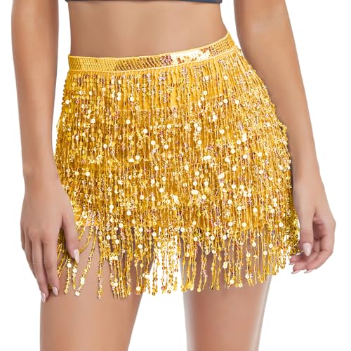 Women's Sequin Tassel Skirts Rave Fringe Hip Scarf for Festival 2