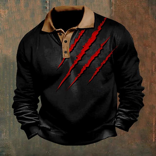 More information about Men's Claw Marks Polo Shirts Pullover Long Sleeve Polo Shirts Collar Vintage Casual Outdoor Vacation Streetwear 3D Print Buttons Fall & Winter Dark Brown Black Dark Green