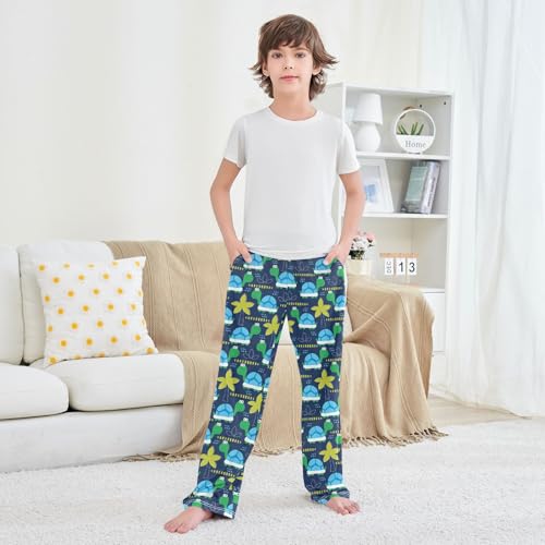 Turtle Palm Tree Boys Long Pants Soft Trousers Elastic Waist Kids Lounge Bottoms with Pockets S-XL 4
