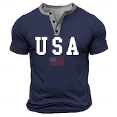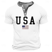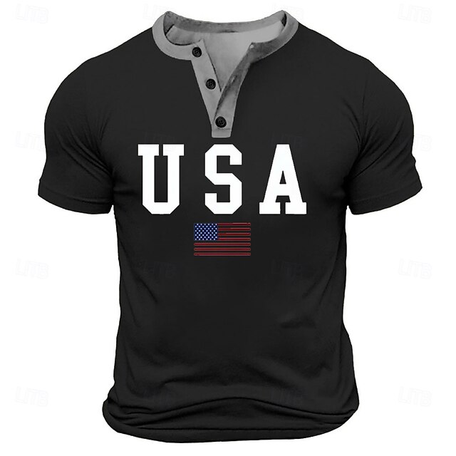 More information about Men's American US Flag USA T Shirt Henley Shirt Short Sleeve Designer Retro Vintage Street Casual Daily Summer Spring Black White Navy Blue Military Green Henley Henley T-Shirt