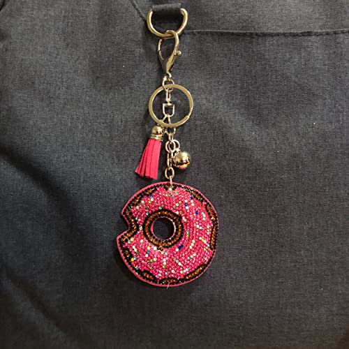 HOT ! Popfizzy Bling Pink Donut Keychain for Women and Girls, Rhinestone Purse Charms, Donut Gifts, Donut Accessories