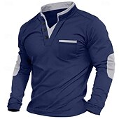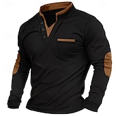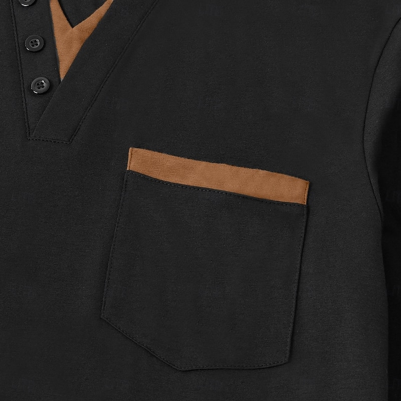 More information about Men's T Shirt Henley Shirt Tee Top Long Sleeve Shirt Long Sleeve Color Block Fashion Designer Basic Patchwork Pocket Henley Vacation Street Going out Spring & Fall Black White Navy Blue Henley
