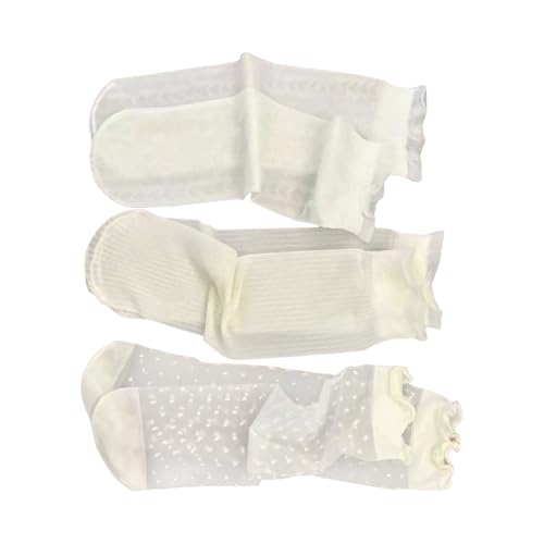 Lace Trim Kids Socks for 2-12Age Warm Socks Antislip Dress Ruffle Trim Socks Thin Ice Silk Ankle Socks 3Pairs,Cotton 1