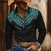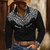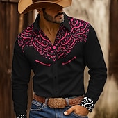 Men's Floral Print Ethnic Shirt Western Shirt Button Up Shirt Long Sleeve Vintage Retro Outdoor Casual WorkWear Spring Fall Turndown 3D Print Collared Shirts Black-Red Black+White Black+Blue 3