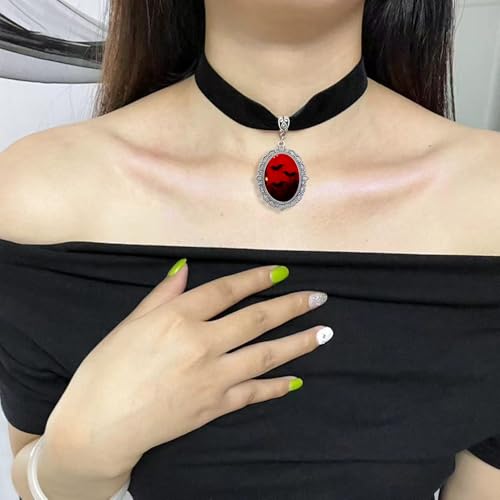 More information about Blood Bat Cameo Choker Necklace Gothic Red Cabochon Pendent Necklace Vampire Accessories for Women