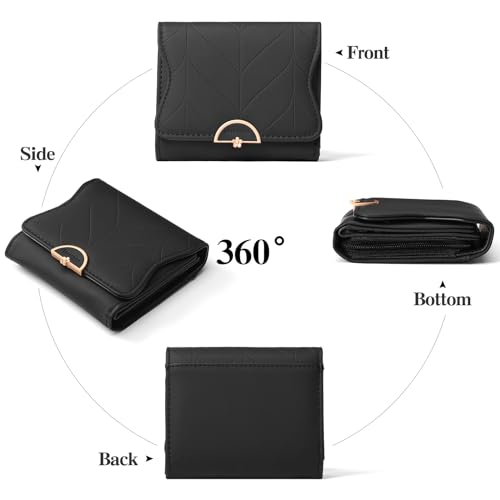Cute Genuine Leather Wallet for Women RFID Blocking Bifold with Zipper Coin Pocket (Black) 5