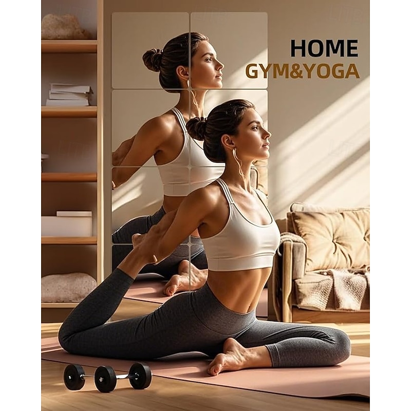 4 Pack Glass Wall Mirror Tiles 12" x 12" Frameless Full Length Mirror Wall Mounted Full Body Mirrors for Bedroom Home Gym Door Bathroom 6