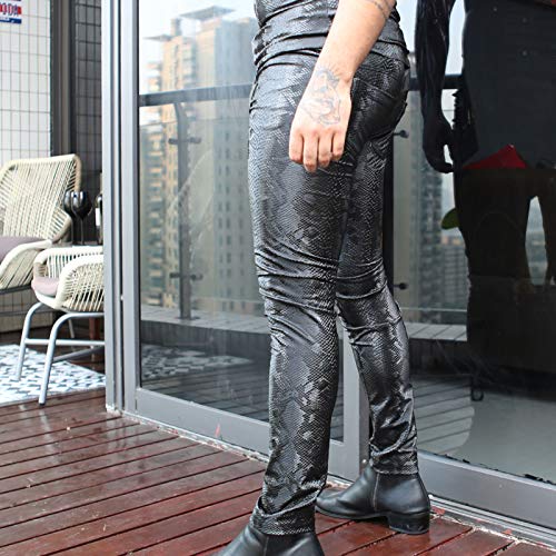LESOYA Men's Snakeskin Printed PU Leather Trousers Slim Fit Leggings Skinny Long Pants 6