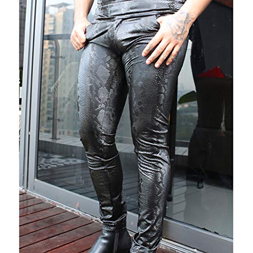 More information about LESOYA Men's Snakeskin Printed PU Leather Trousers Slim Fit Leggings Skinny Long Pants