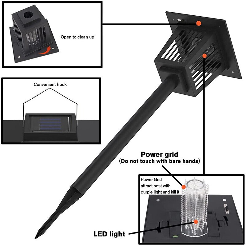 2PCS Solar Mosquito Lamp Outdoor Electric Mosquito Lamp Garden Garden Mosquito Lamp Rainproof Light Control Electric Shock Mosquito and Fly Catcher 9