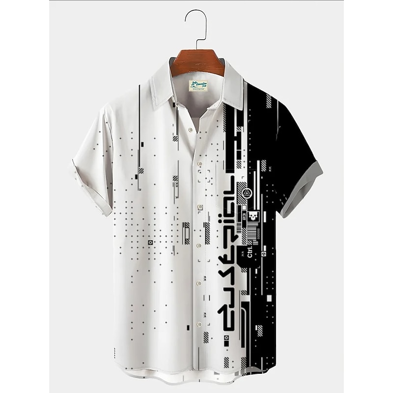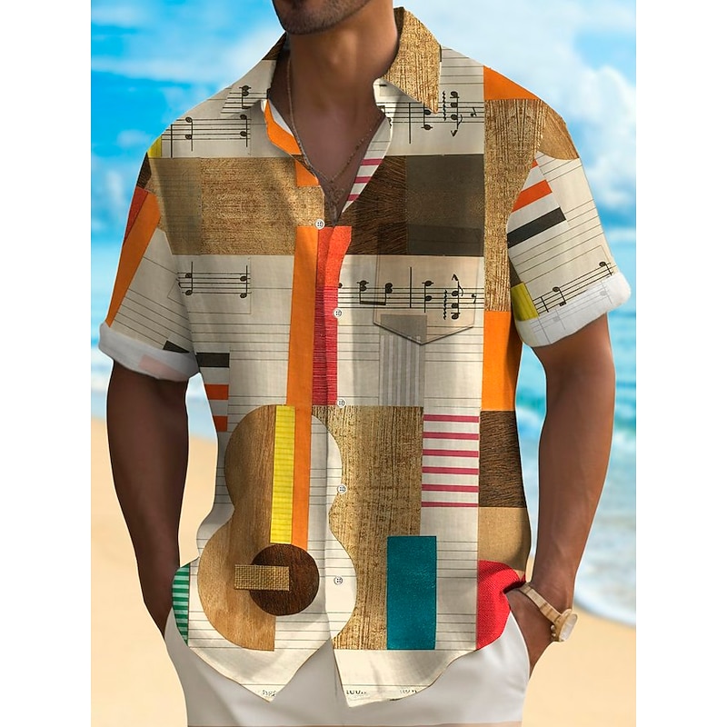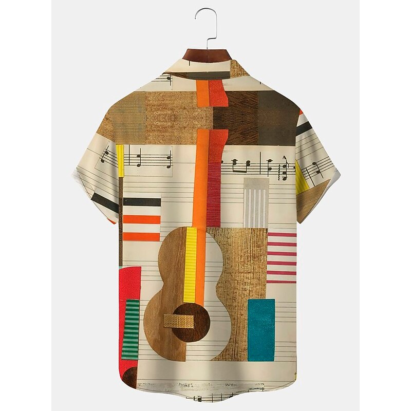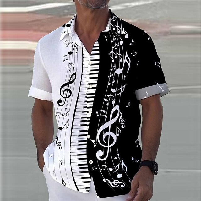 More information about Men's Boardmasters Music Notes Shirt Button Up Shirt Short Sleeve Fashion Designer Casual Outdoor Casual Summer Spring Turndown Print Black Green Khaki Coffee Blue+Blue