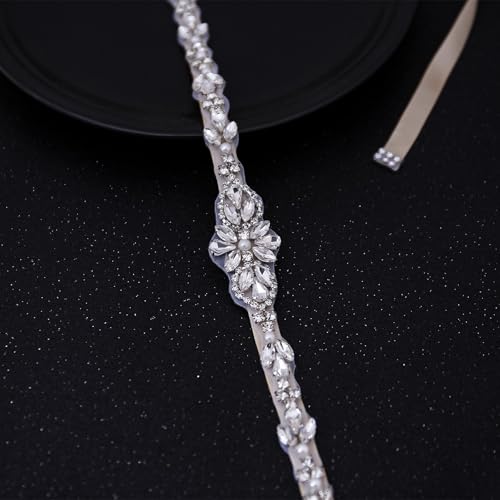 Thin Bridal Belt with Pearls Rhinestones Shiny Crystal Bridesmaid Beads Sash for Wedding Gown 5