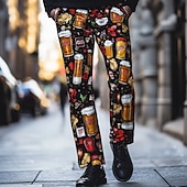 Men's Oktoberfest Beer Dress Pants Trousers Suit Pants Mid Waist Casual Vacation Holiday Regular Fit Flat-Front Straight Leg Pants with Pockets Summer Spring Fall 3D Print Black 5