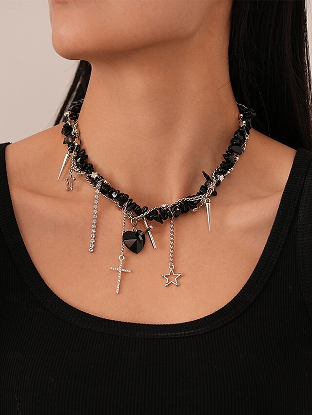 $14.99 - Women's Punk Gothic Black Stone Choker Necklace with Cross, Heart and Star Charms - Statement Jewelry for Party, Club and Night Out 2025. Shop for cheap Women's Necklace online? Buy at lightinthebox.com on sale today!