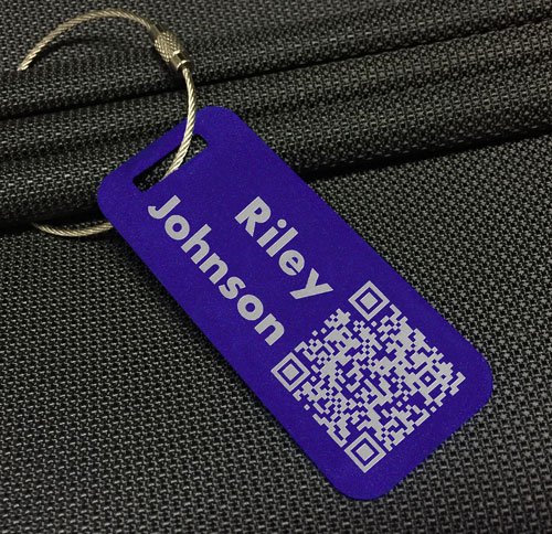 Custom Metal Luggage Tag - Customized Engraved Info & QR Code (Small, Black) 1