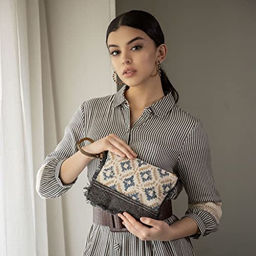 HOT ! Myra Bag Exude Charm Pouch Upcycled Canvas, Rug, Leather & Cowhide S-2661