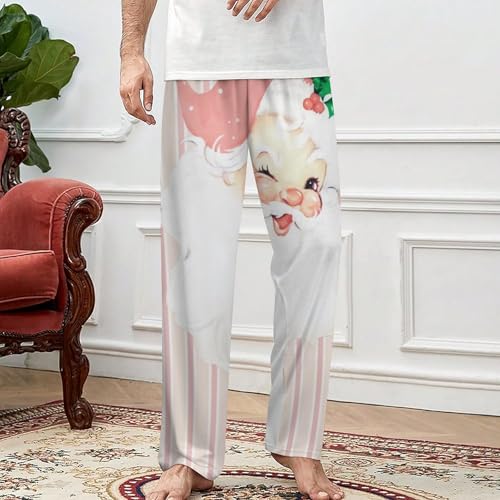 Blush Pink Vintage Winking Santa Christmas Men Pajama Pants Soft Drawstring LooseCasual Pajama Running with Pocket 1