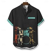 More information about Men's Boardmasters Music Guitar Shirt Button Up Shirt Short Sleeve Casual Daily Summer Spring Grandad Collar Band Collar Button Up Pocket 3D Print Black Green