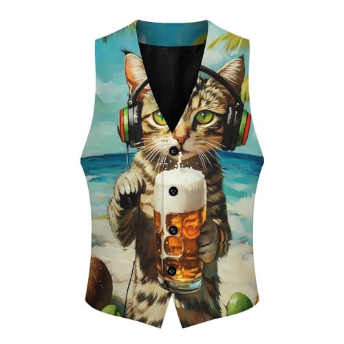 Beer Cat Men's Suit Vest Slim Fit Business Dress Party Pattern Waistcoat Vest Top 1